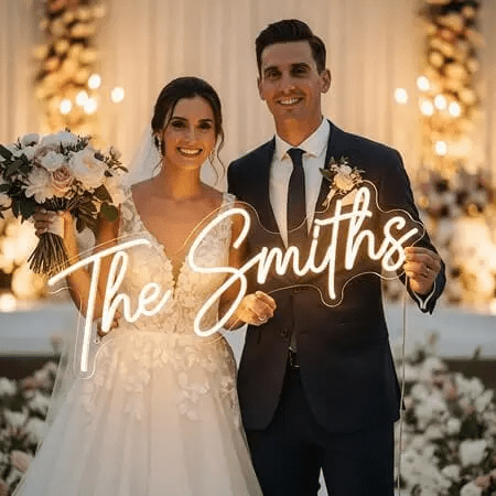 GS-JJ create personalised LED neon signs for weddings, offering elegant designs that add a warm, modern glow to your special day.
