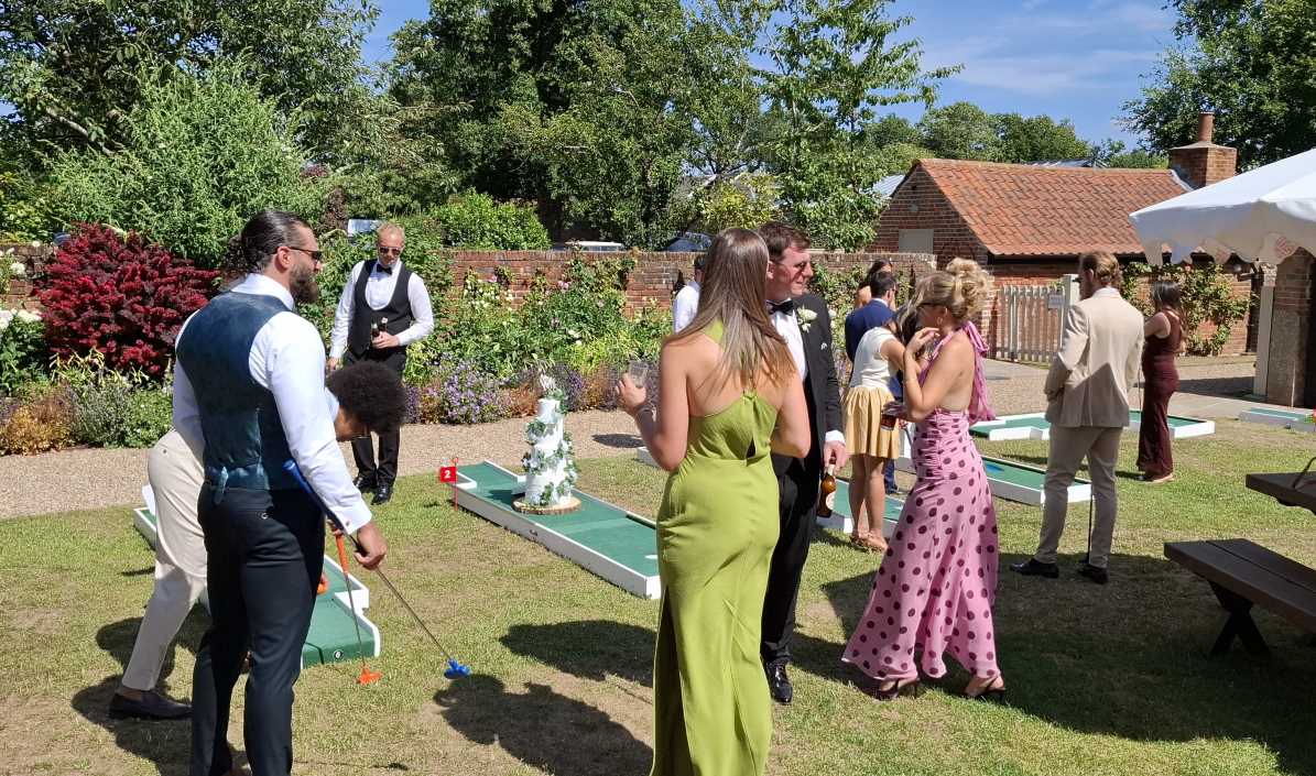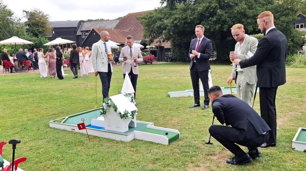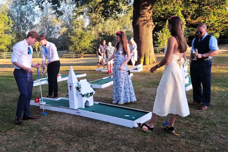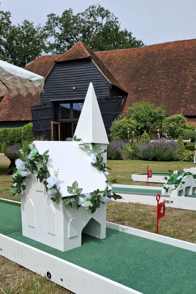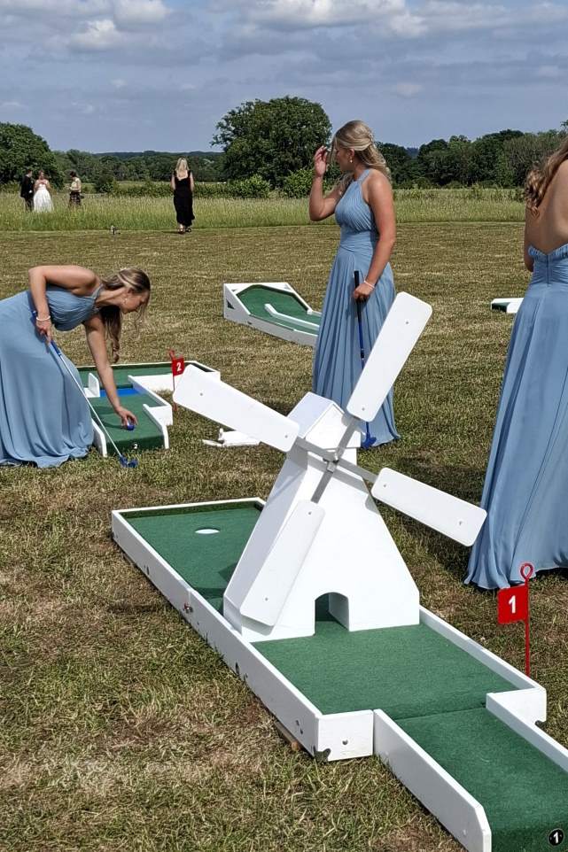 Moreover, this custom-built crazy golf course offers the ultimate experience for your wedding day. It is the perfect way to add an element of fun and excitement between your ceremony and reception, providing outstanding photo opportunities along the way.