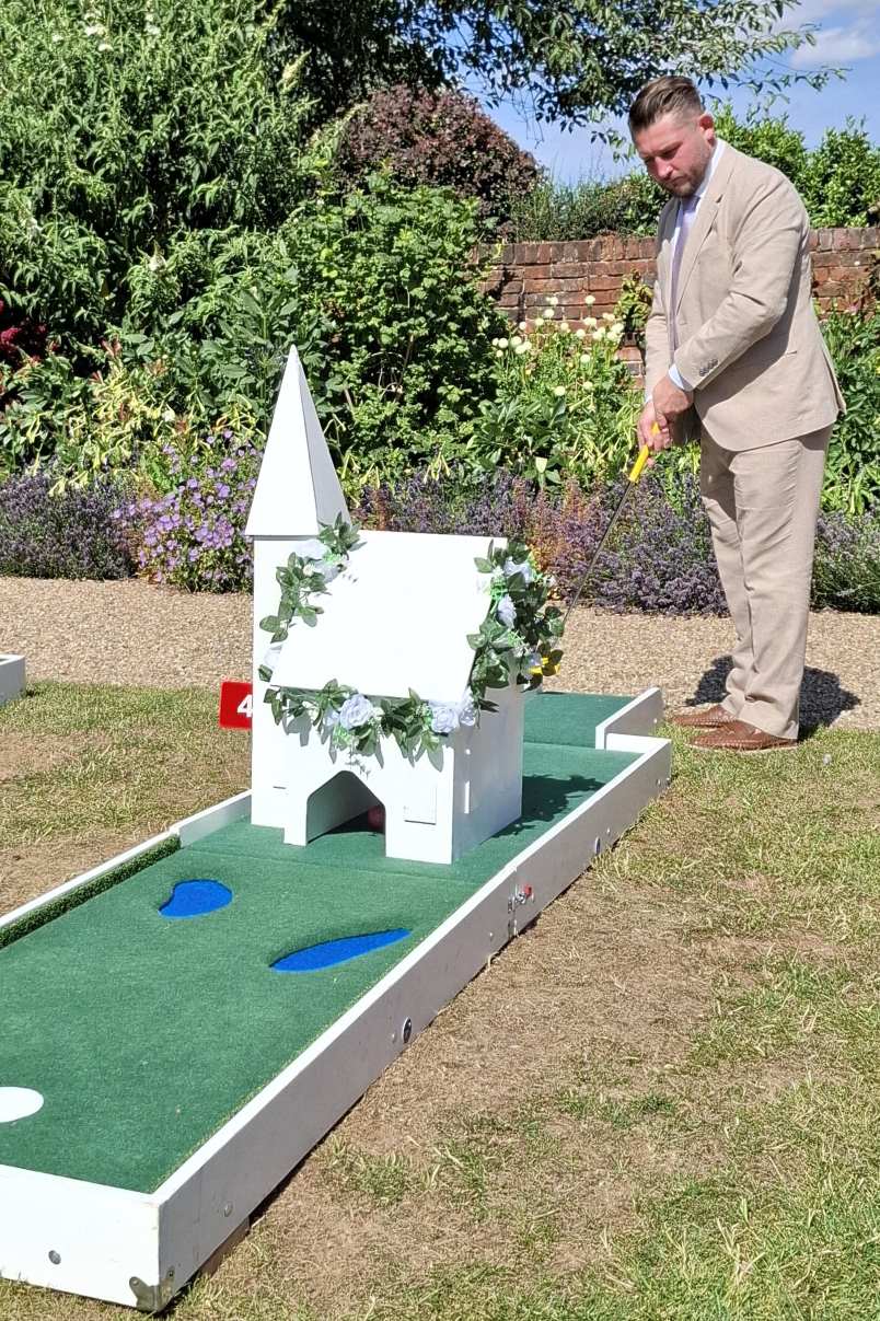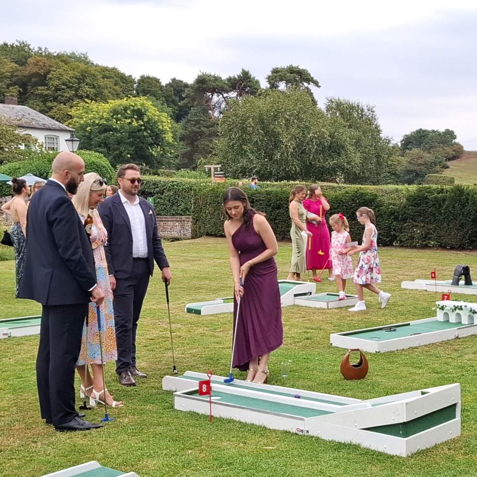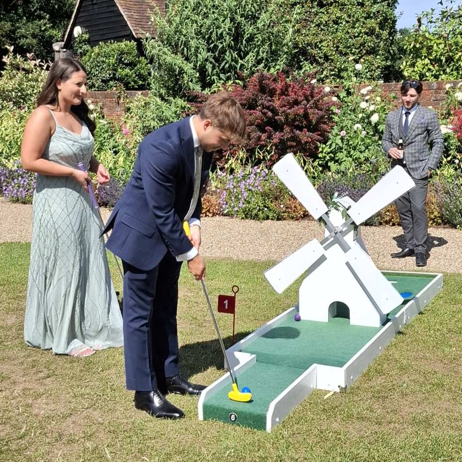 Moreover, this custom-built crazy golf course offers the ultimate experience for your wedding day. It is the perfect way to add an element of fun and excitement between your ceremony and reception, providing outstanding photo opportunities along the way.