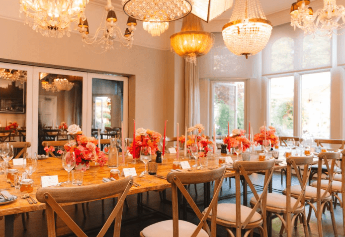 With a selection of wonderfully unique event spaces, inside and out, Homewood can tailor your big day to suit your style and personality. The flexible restaurant comes with easy access to the garden and can be configured into three – Chandelier, Plate or Flower – unique rooms for you to choose from, or there’s an elegant marquee if you are wanting an outdoor affair.