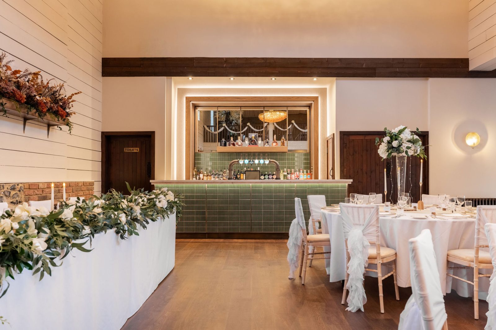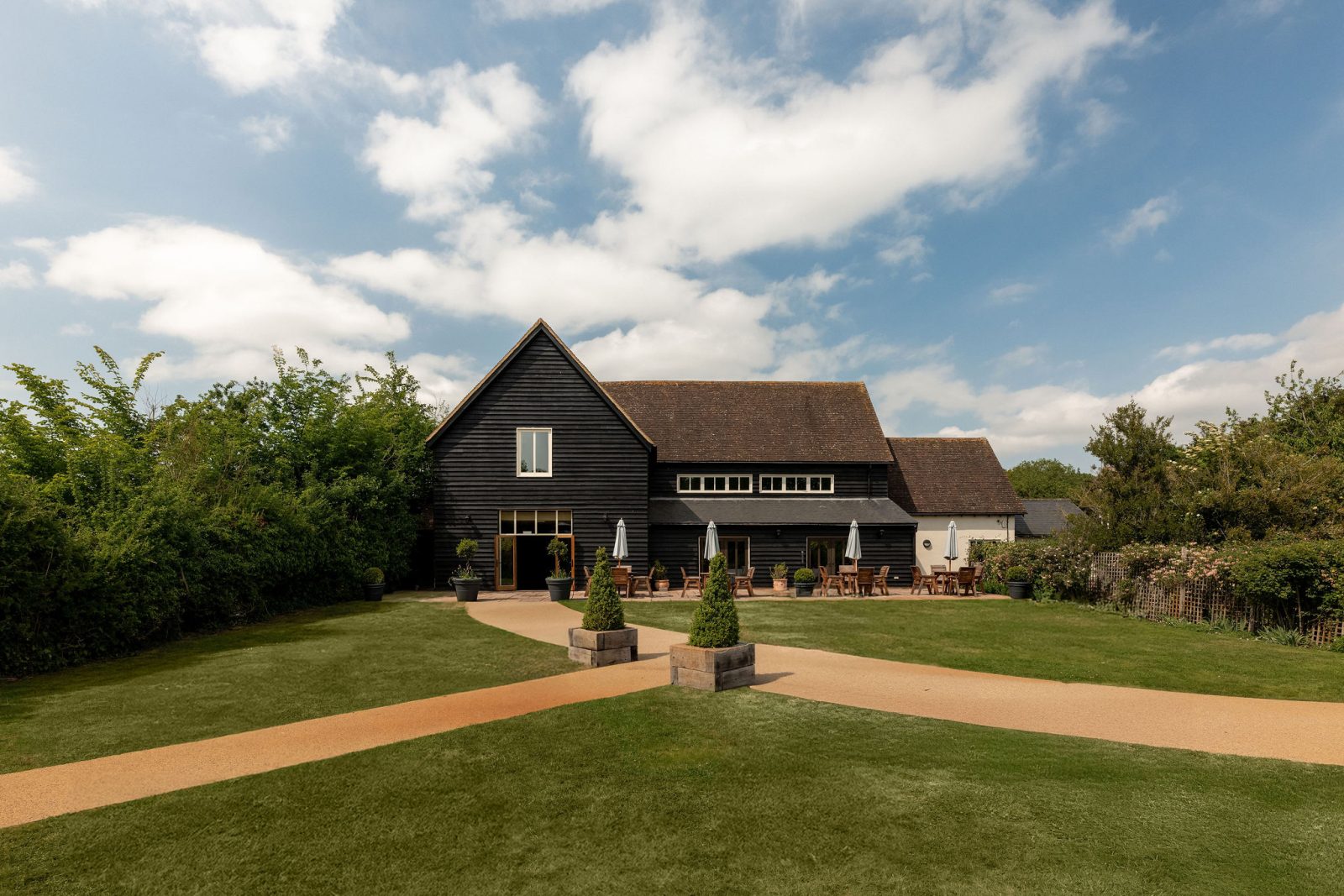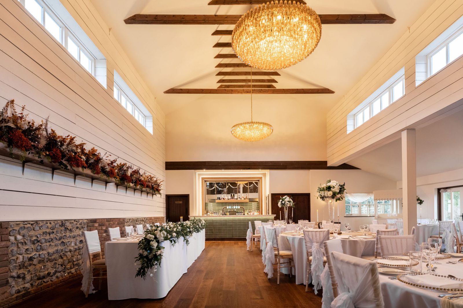 The Essex Barn is a magnificent building in the grounds of The White Hart, Great Yeldham. Situated on the Essex/Suffolk border surrounded by the tranquil British countryside. The spacious barn can host up to 200 guests offering the option of either a small and intimate gathering or large and lavish celebration.