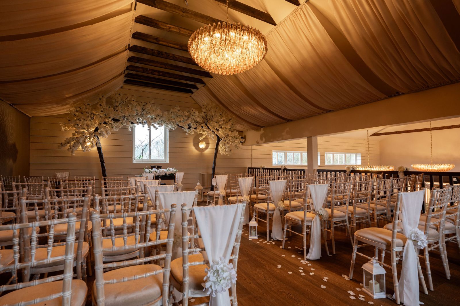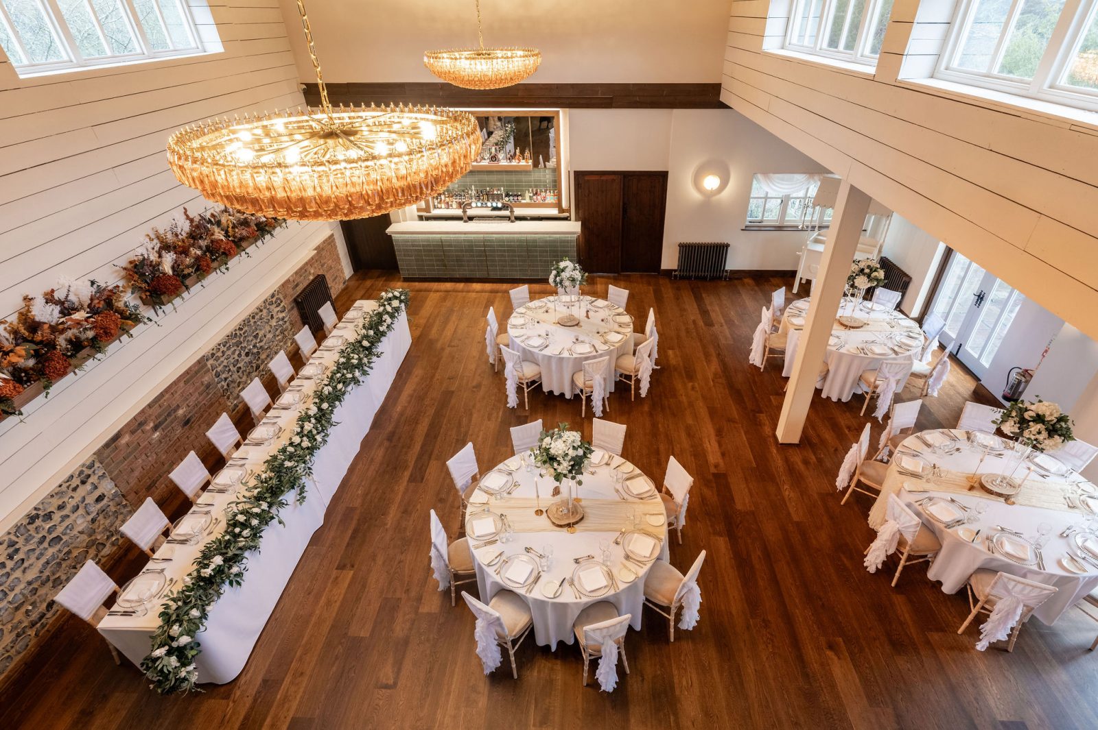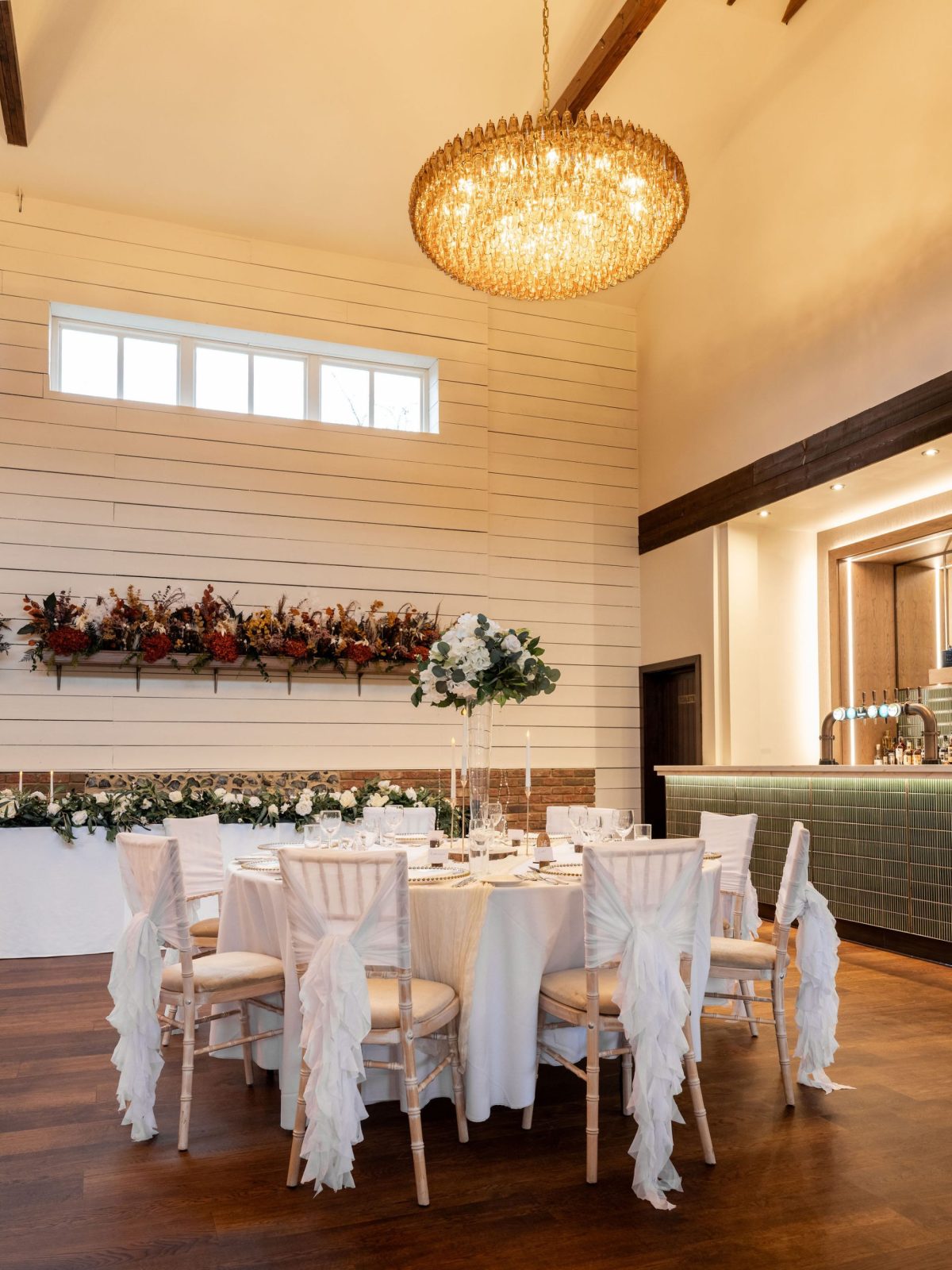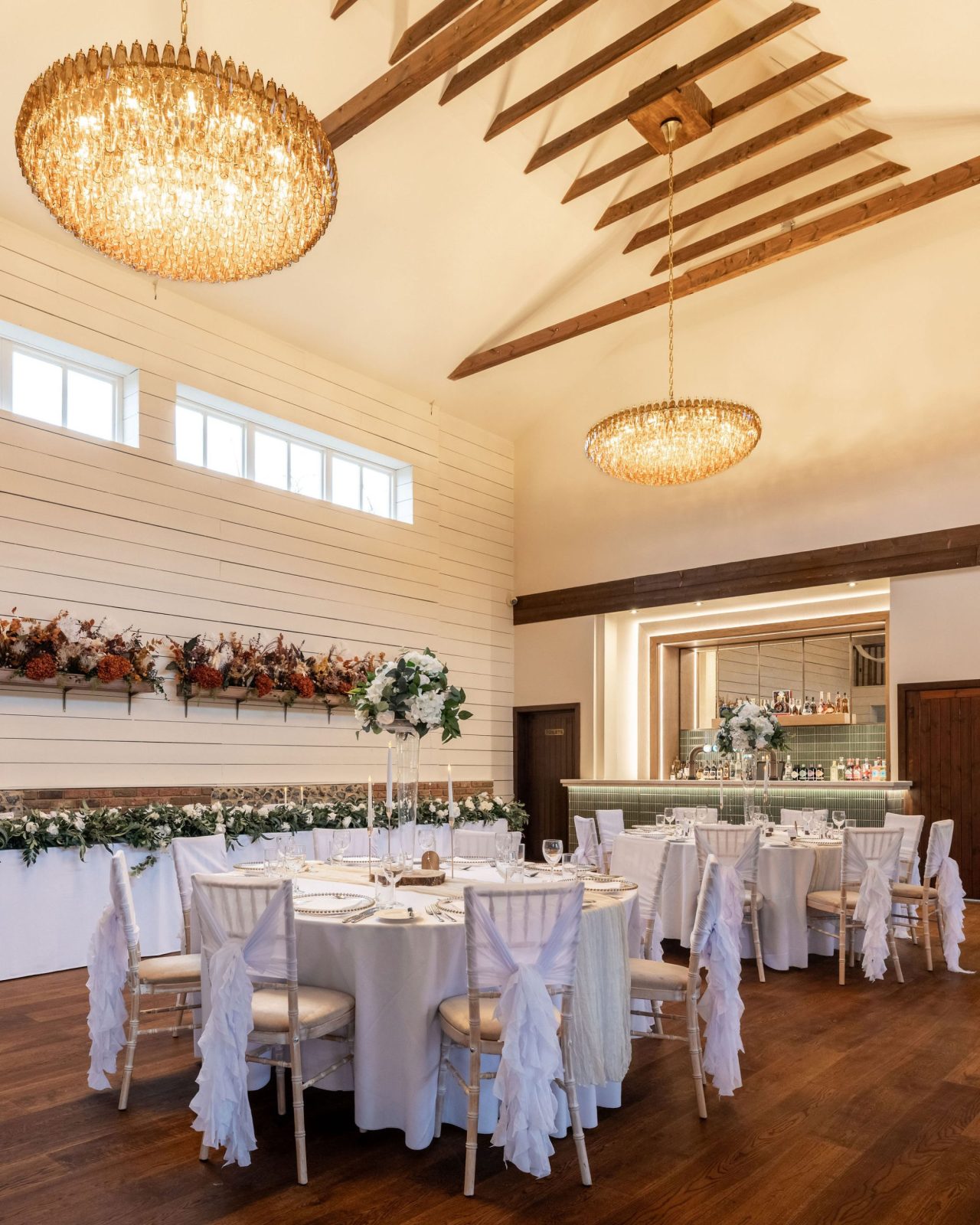 The Essex Barn is a magnificent building in the grounds of The White Hart, Great Yeldham. Situated on the Essex/Suffolk border surrounded by the tranquil British countryside. The spacious barn can host up to 200 guests offering the option of either a small and intimate gathering or large and lavish celebration.