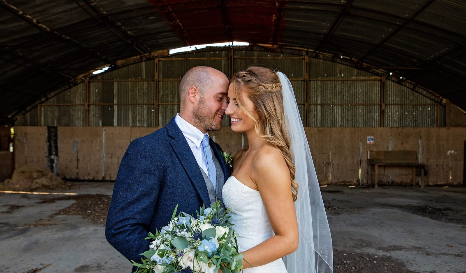 The theme/look of the day was rustic and relaxed yet visually beautiful. We wanted to accentuate what the barn offered which was a very real, natural and rustic feel but enhance that with lots of white flowers and green foliage, and we added a touch of pale blue to the colour scheme which was perfect for the time of year.